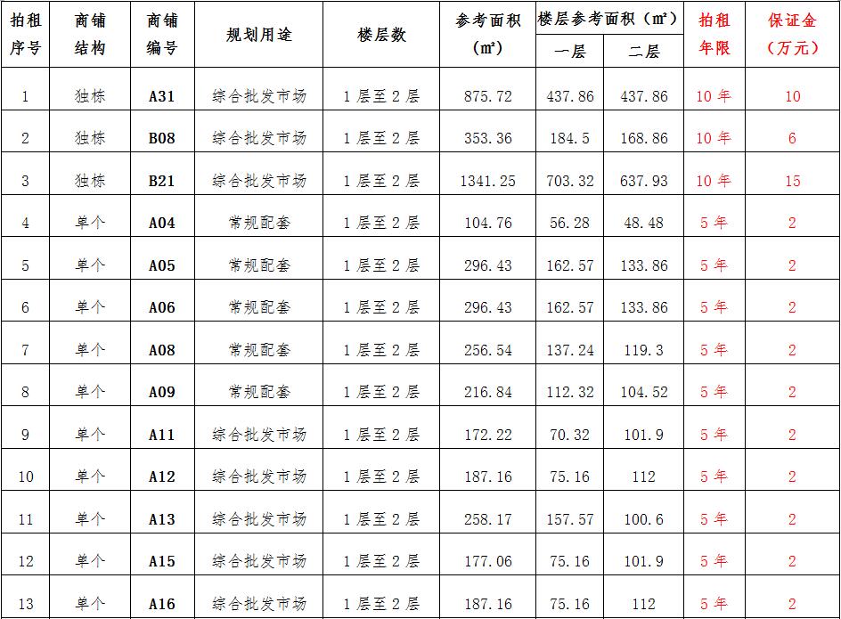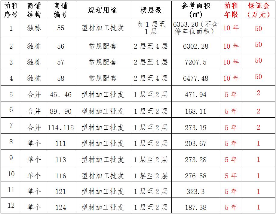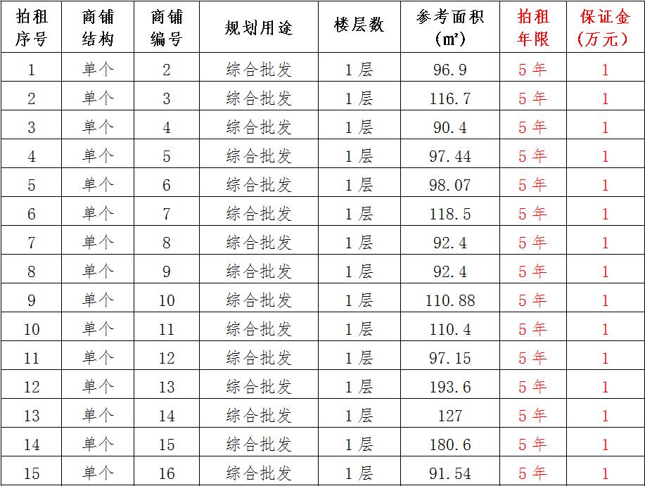 (一)拍租位于鎮(zhèn)雄縣南臺街道呢嚕坪安置點7棟獨立商鋪使用權(quán)。以棟為單位拍租。詳見下表: