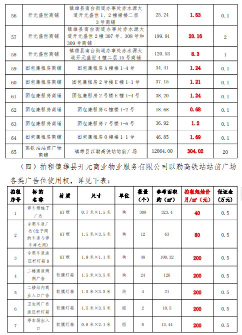 鎮(zhèn)雄縣國有資產(chǎn)使用權拍租公告